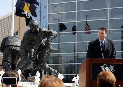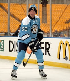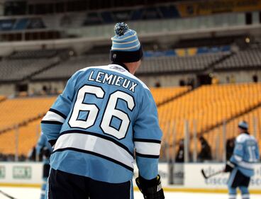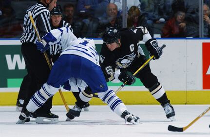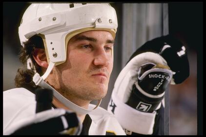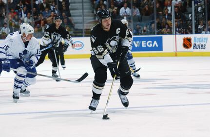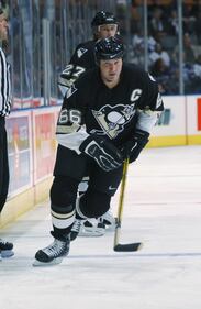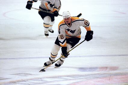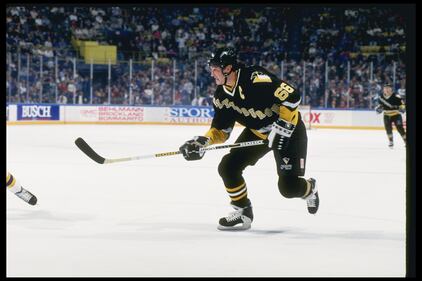 Mario Lemieux 27 Dec 1992: Center Mario Lemieux of the Pittsburgh Penguins moves down the ice during a game against the Buffalo Sabres at Memorial Auditorium in Buffalo, New York. (Rick Stewart/Getty Images)