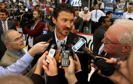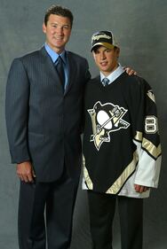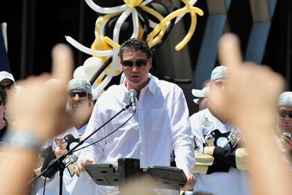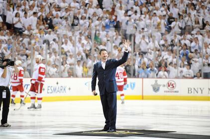 NHL Awards Lemieux 19 Jun 1996: Mario Lemieux of the Pittsburgh Penguins wins the Hart Trophy during the NHL Awards ceremony at the Metro Convention Center in Toronto, Ontario, Canada. (Rick Stewart/Getty Images)