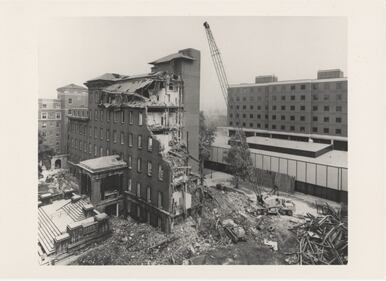 Shadyside Hospital Historical Photos 1969 demolition of Shadyside Hospital's original structure at the corner of Aiken and Centre Avenues. Shadyside Hospital's current building is visible in the background. (Detre Library & Archives, Sen. John Heinz History Center)