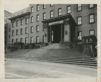 Shadyside Hospital Historical Photos An image from 1925 or 1926 of the main entrance to Shadyside Hospital's first building at the corner of Aiken and Centre Avenues showcasing the addition of a new North Wing. (Detre Library & Archives, Sen. John Heinz History Center)