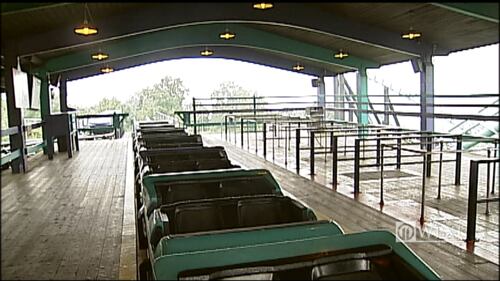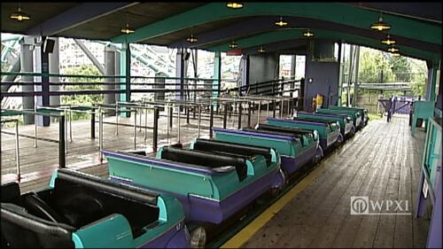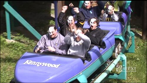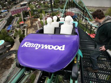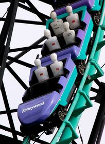 Phantom's Revenge Ghost riders, white plastic dummies filled with water, stand in for the weight of passengers as the Phantom's Revenge roller coaster is run on Saturday, April 19, 2008 in West Mifflin, Pa., as part of pre-season preparations at Kennywood amusement park. (ASSOCIATED PRESS)