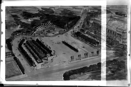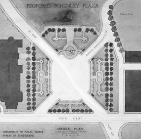 Schenley Park history Proposed drawing of Schenley Plaza created for the Department of Public Works, Bureau of Engineering on July 11, 1914. (Archives & Special Collections, University of Pittsburgh Library System)