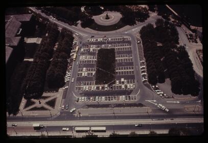 Schenley Park history Aerial View of Schenley Plaza and the Carnegie Institute taken in August 1969. In 2005-2006 the parking lot would be transformed into a beautiful 10-acre urban parklet containing four food kiosks, public performance space, landscaped gardens, and a carousel. (Archives & Special Collections, University of Pittsburgh Library System)