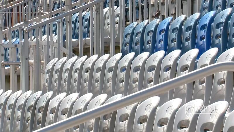 Lest there be any doubt who has the home field advantage, the seats are color-coordinated to spell out “HOUNDS” in giant letters across six sections.