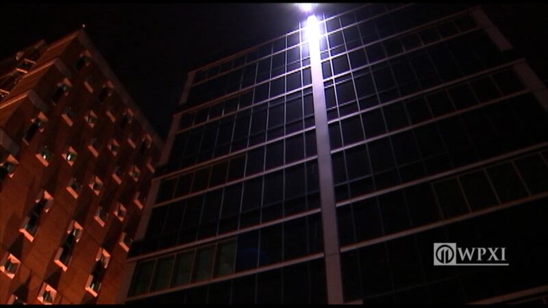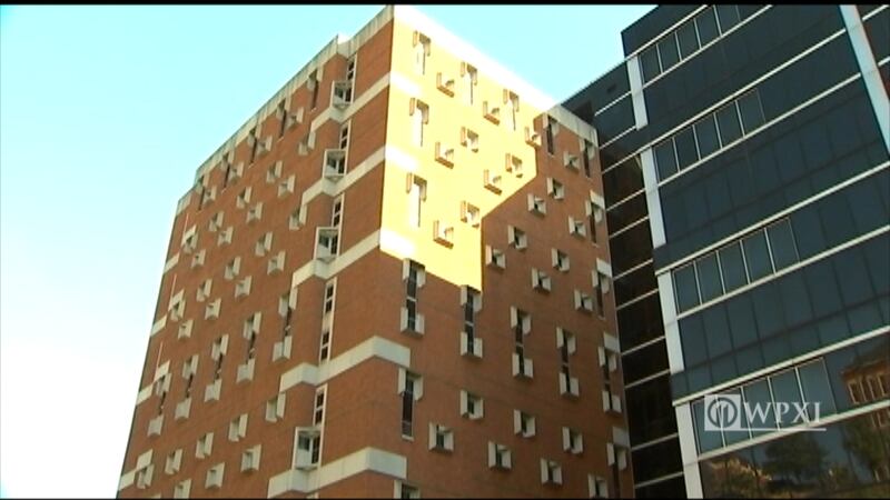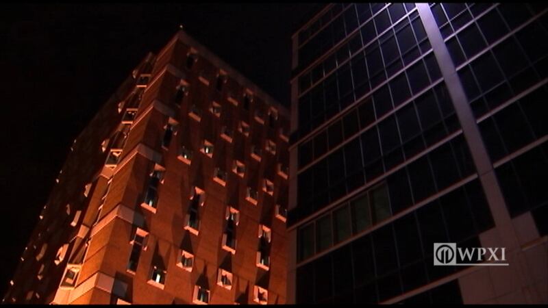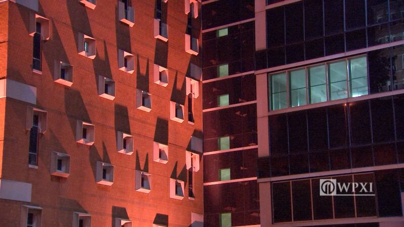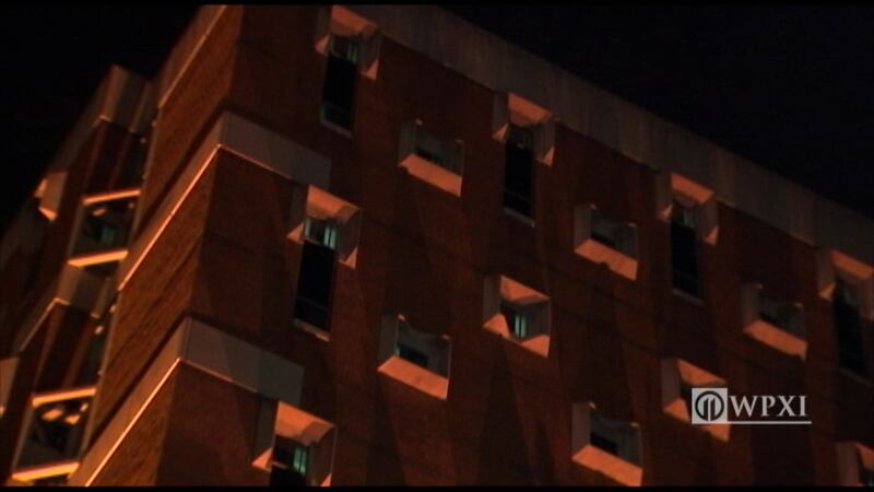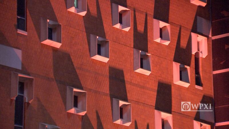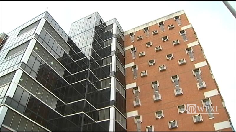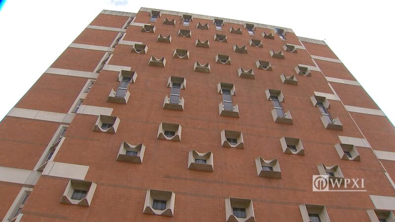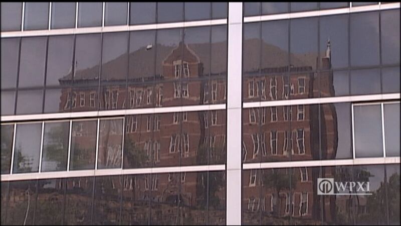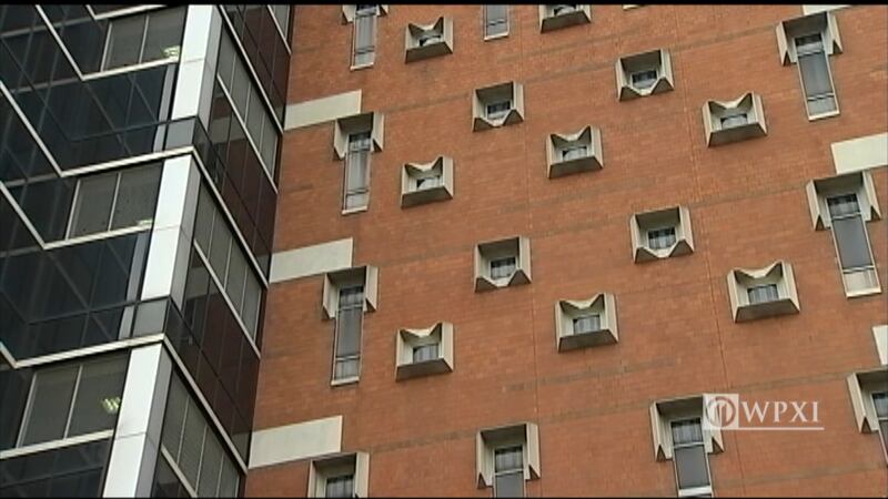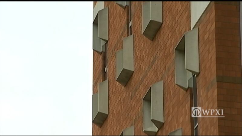 Tasso Katselas Associates designed the building, which cascades from a nine-story peak down to five stories, so as not to detract from Duquesne University’s Old Main Building behind it. The building’s exterior is a mix of brick, precast concrete and glass, which is typical of Katselas’ work.