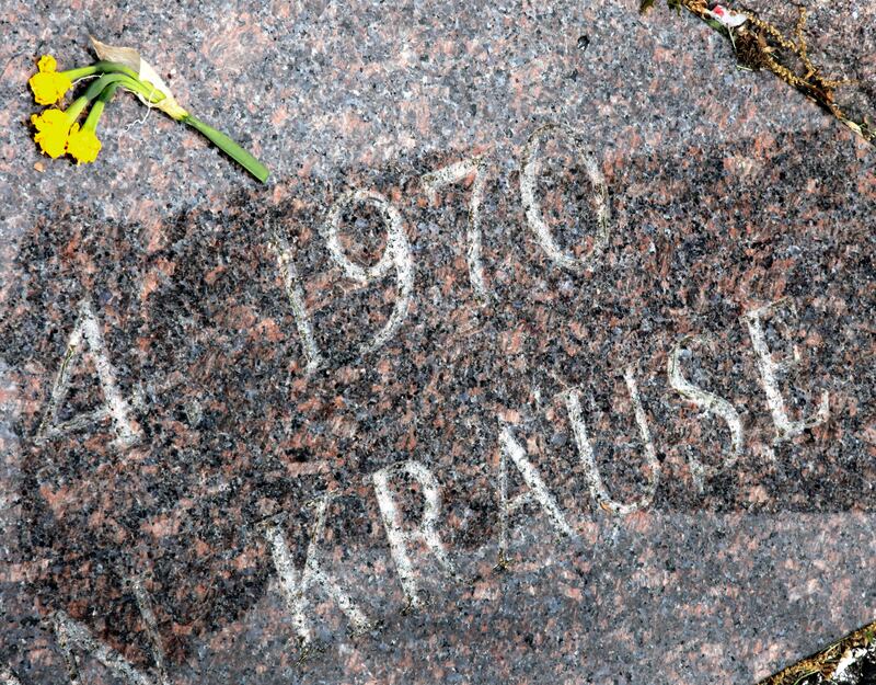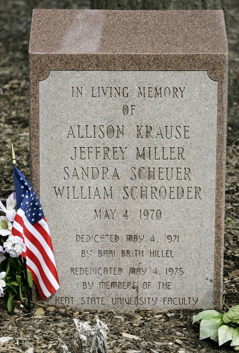 Kent State University shooting A flower lays on the granite marker at the location where student Allison Krause was shot and killed on May 4, 1970 on the campus of Kent State University in Kent, Ohio. (AP Photo/Amy Sancetta) (Amy Sancetta/ASSOCIATED PRESS)