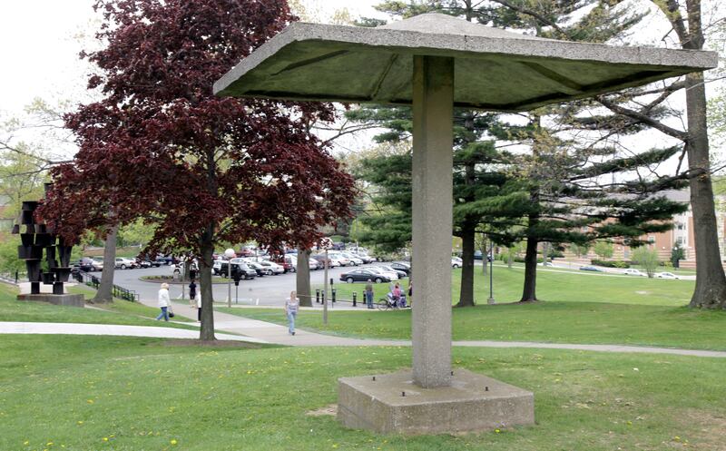 Kent State University shooting ** FILE ** In this May 1, 2007 file photo, a student walks past a new Ohio Historical marker commemorating the 1970 Kent State University shootings on the campus in Kent, Ohio. Like a history book with its pages scattered from the sky, Ohio's landscape is bejeweled with state historical markers. There are currently 1,210, and the program that gave rise to them is celebrating its 50th birthday. (AP Photo/Mark Duncan, File) (Mark Duncan/ASSOCIATED PRESS)