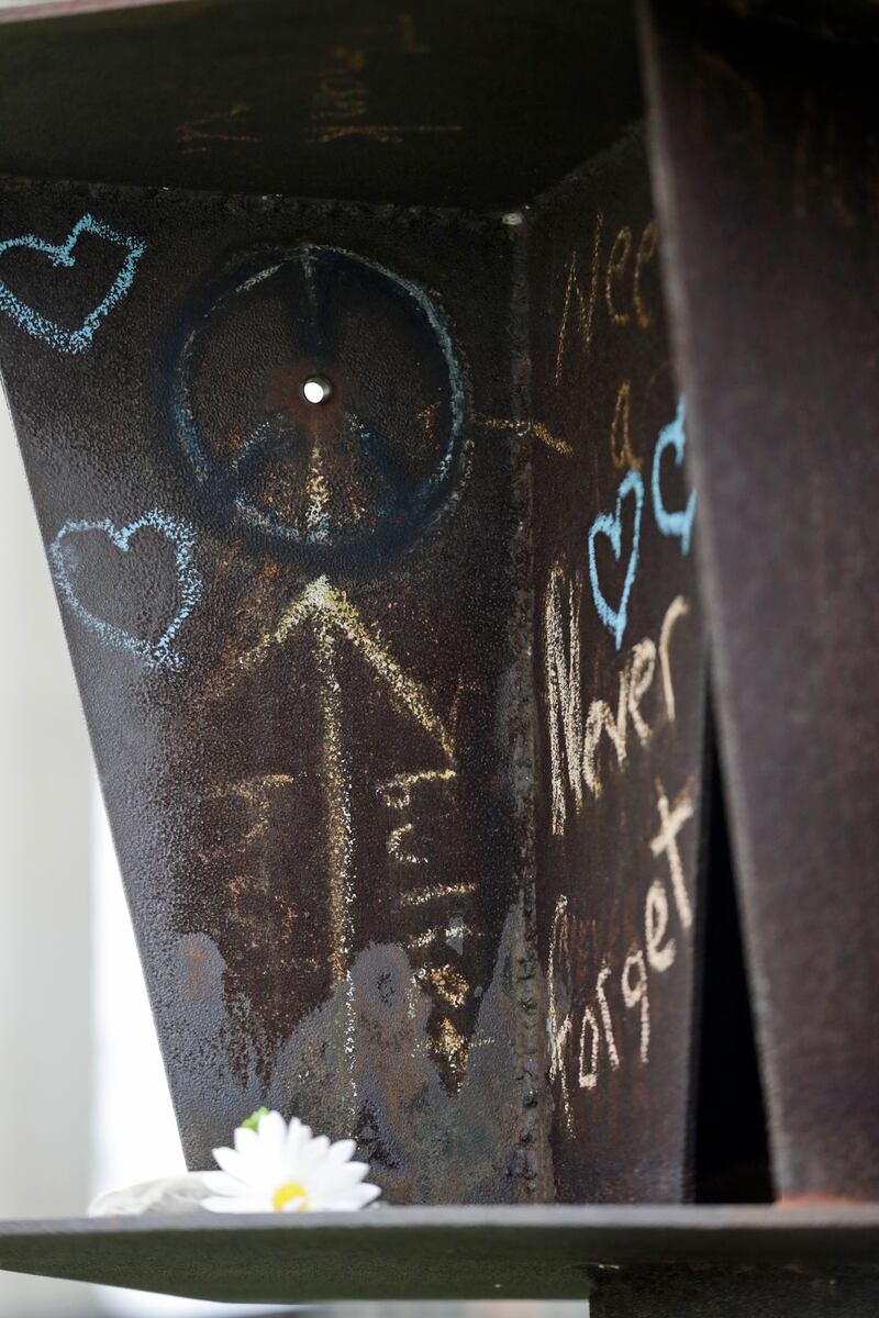 Kent State University shooting The memorial for Sandra Scheuer is shown through a bullet hole in a sculpture, Monday, May 4, 2020, in Kent, Ohio. The Ohio National Guard opened fire on unarmed college students during a war protest at Kent State University on May 4, 1970. Four students were killed, and nine others were injured. Not all of those hurt or killed were involved in the demonstration, which opposed the U.S. bombing of neutral Cambodia during the Vietnam War. (AP Photo/Tony Dejak) (Tony Dejak/AP)
