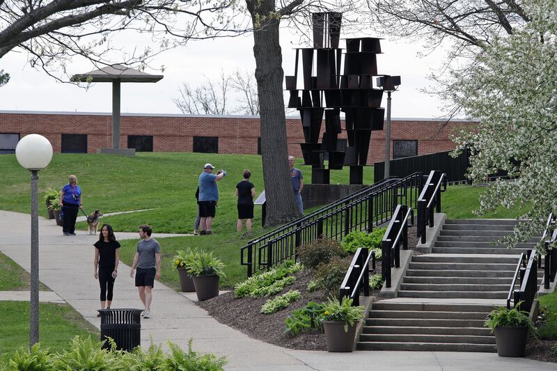 Kent State University shooting Visitors to the Prentice Hall parking lot on the campus of Kent State University in Kent, Ohio, pay their respects at markers indicating where fell mortally wounded when Ohio National Guardsmen opened fire on students during a protest against the escalation of the war in Vietnam, Sunday, May 3, 2020. (AP Photo/Gene J. Puskar) (Gene J. Puskar/AP)