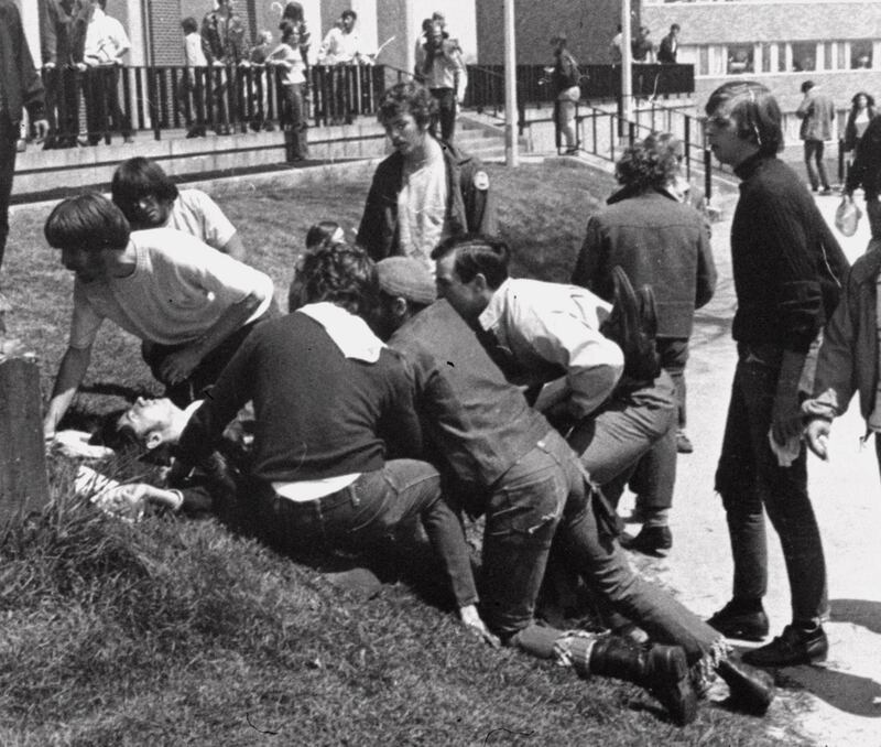 Kent State University shooting A Kent State University student lies on the ground after National Guardsman fired into a crowd of demonstrators on May 4, 1970 in Kent, Ohio. (AP Photo) (ASSOCIATED PRESS)