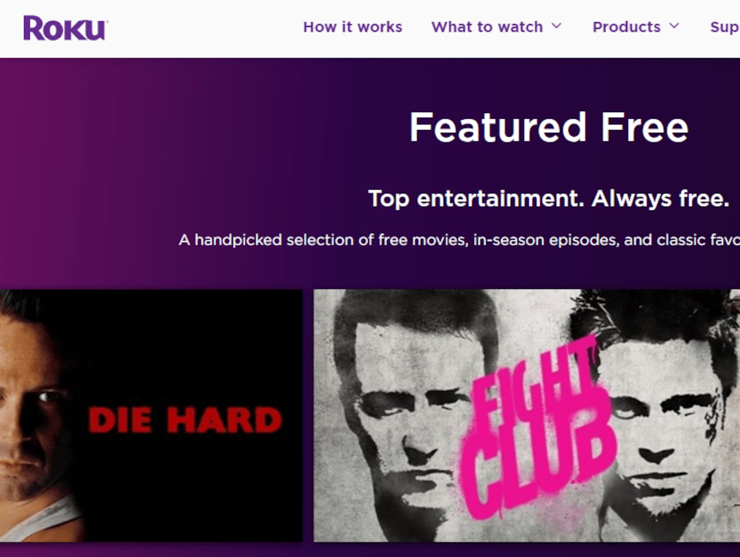 If you've got a Roku device, the Roku Channel features a mixture of free movies and TV shows from different channels. Of course, the Roku device costs money, but you can sign up for a free account and still enjoy the "Featured Free" section.