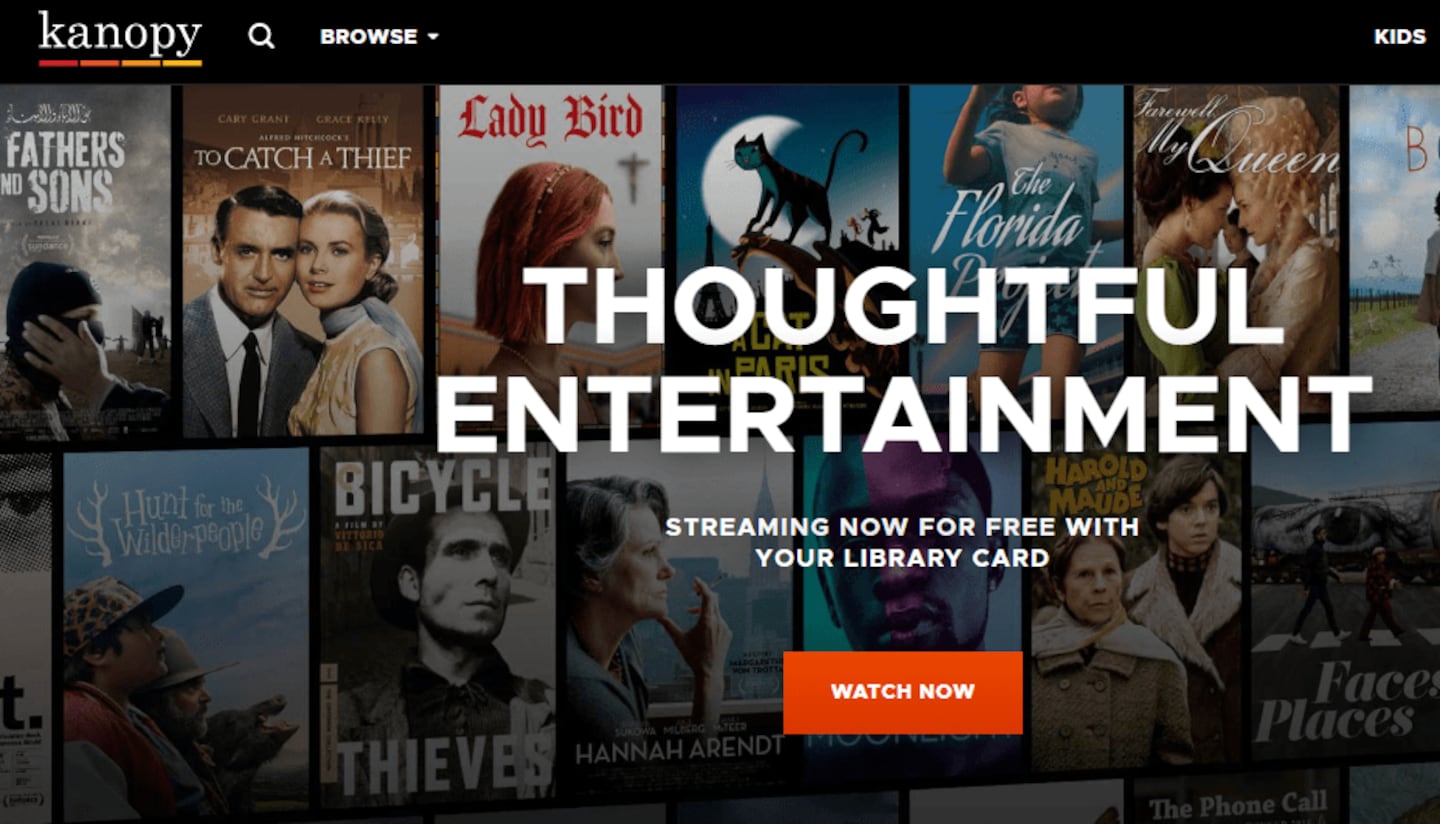 Kanopy, a site with lots of classic cinema and kids movies, works with your library card. You can stream up to 10 movies a month before a paid plan kicks in.