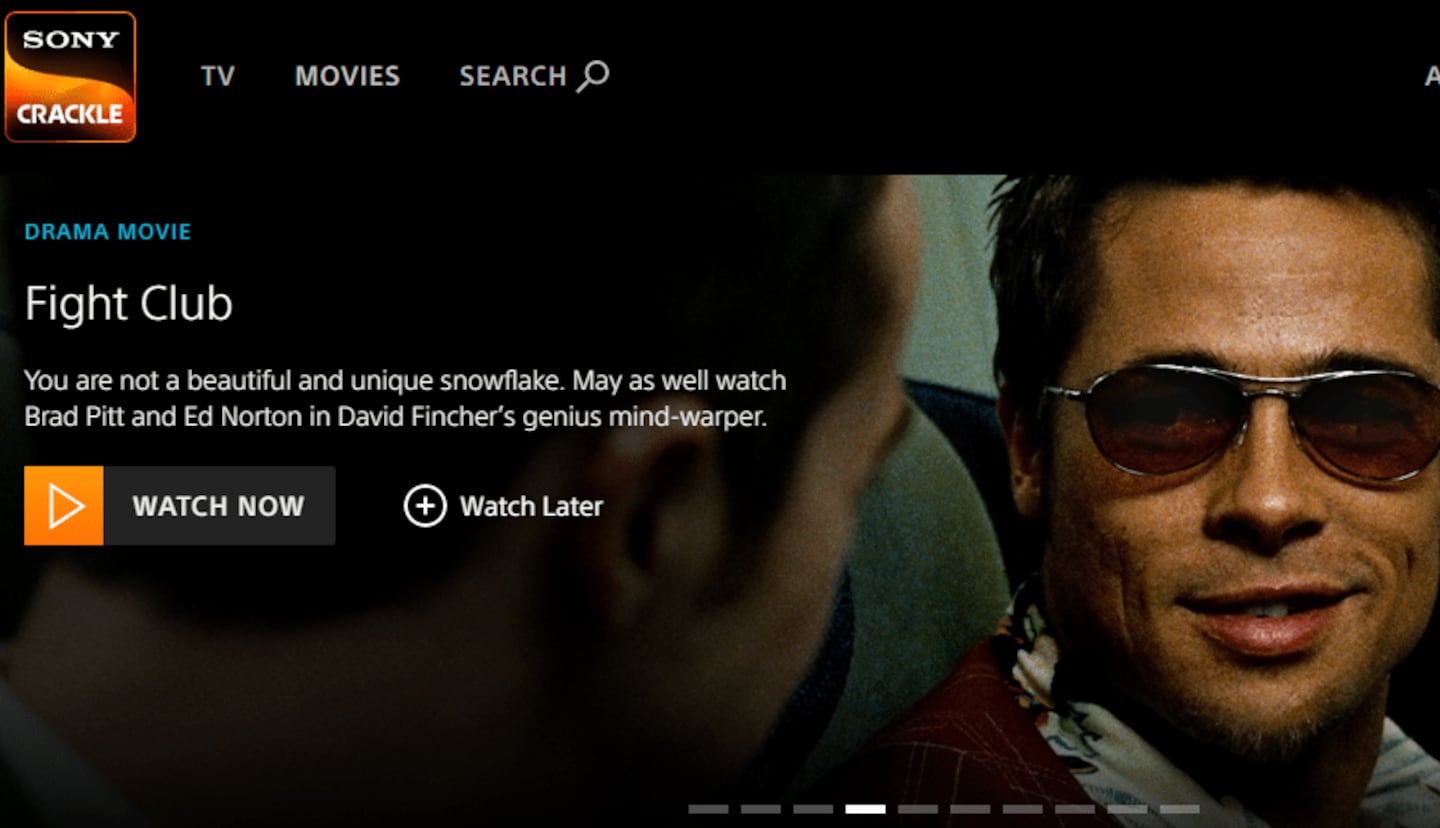 Crackle is a free streaming service owned by Sony. The platform has plenty of older films (Fight Club, for example), but they all come with ads.