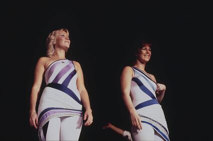 ABBA through the years Singers Agnetha Fältskog (left) and Anni-Frid Lyngstad performing with Swedish pop group Abba on their third, and final, tour, 1979. (Photo by Keystone/Hulton Archive/Getty Images) (Matt Green/Getty Images)