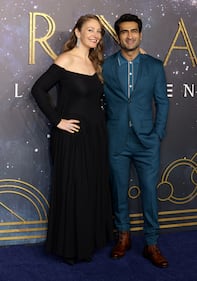 Photos: Angelina Jolie, 'Eternals' stars walk the red carpet at UK premiere Emily V. Gordon and Kumail Nanjiani attends the "Eternals" UK Premiere at the BFI IMAX Waterloo on October 27, 2021, in London. (Tim P. Whitby/Getty Images)