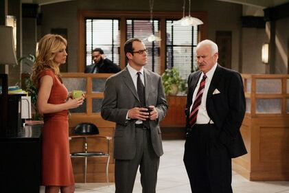Courting Alex Dabney Coleman, right, ties to manipulate Josh Stamberg into turning down a partner position at another firm while Jenna Elfman watches during a 2006 episode of "Courting Alex."