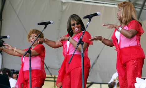 Photos: Dixie Cups singer Rosa Lee Hawkins through the years 2015: Rosa Hawkins (left), Athelgra Neville and Barbara Hawkins perform during the 2015 New Orleans Jazz & Heritage Festival presented by Shell at Fair Grounds Race Course on May 2, 2015, in New Orleans, Louisiana. (Douglas Mason/Getty Images)