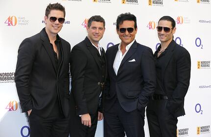 Photos: Carlos Marín through the years 2015: David Miller, Sebastien Izambard, Carlos Marin and Urs Buhler of Il Divo attend the Nordoff Robbins 02 Silver Clef Awards at the Grosvenor House Hotel on July 3, 2015, in London. (Tim P. Whitby/Getty Images)