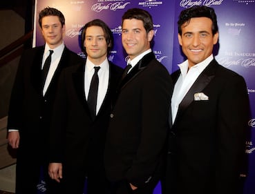 Photos: Carlos Marín through the years 2005: Sebastien Izambard (France), Carlos Marin (Spain, baritone), David Miller (USA, tenor) and Urs Buhler (Switzerland) of Il Divo. (Lalo Yasky/WireImage via Getty Images)