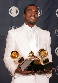 Photos: Kanye West through the years 2005: Kanye West poses backstage with his awards for "Best Rap Album," "Best Rap Song" and "Best R&B Song" during the 47th annual Grammy Awards at the Staples Center on February 13, 2005, in Los Angeles. (Carlo Allegri/Getty Images)