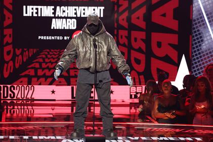 Photos: Kanye West through the years LOS ANGELES, CALIFORNIA - JUNE 26: Kanye West speaks onstage during the 2022 BET Awards at Microsoft Theater on June 26, 2022 in Los Angeles, California. (Photo by Leon Bennett/Getty Images for BET) (Leon Bennett/Getty Images for BET)