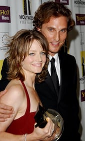 Photos: Matthew McConaughey through the years 2002: Actress/director Jodie Foster with actor Matthew McConaughey, who presented Foster with the Hollywood Outstanding Achievement in Acting Award, at the Hollywood Film Festival's Gala Ceremony and Hollywood Movie Awards at the Beverly Hilton Hotel on October 7, 2002, in Beverly Hills, California. (Jon Kopaloff/Getty Images)