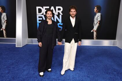 Photos: Red carpet looks at the 'Dear Evan Hansen' premiere Noah Galvin and Ben Platt attend the "Dear Evan Hansen" premiere at Walt Disney Concert Hall on September 22, 2021, in Los Angeles. (Rich Fury/Getty Images)