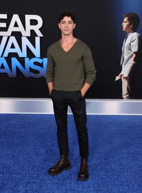 Photos: Red carpet looks at the 'Dear Evan Hansen' premiere Noah Galvin arrives for the premiere of "Dear Evan Hansen" at the Walt Disney Concert Hall in Los Angeles on September 22, 2021. (VALERIE MACON/AFP via Getty Images)