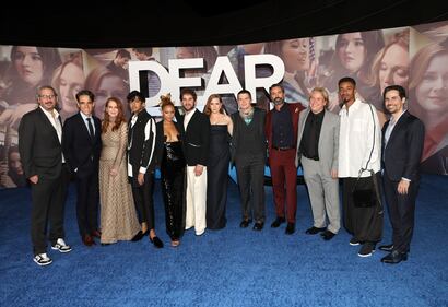 Photos: Red carpet looks at the 'Dear Evan Hansen' premiere Adam Siegel, Steven Levenson, Julianne Moore, Nik Dodani, Amandla Stenberg, Ben Platt, Amy Adams, Colton Ryan, Danny Pino, Stephen Chbosky, DeMarius Copes, and Alex Lacamoire attend the "Dear Evan Hansen" premiere at Walt Disney Concert Hall on September 22, 2021, in Los Angeles. (Kevin Winter/Getty Images)