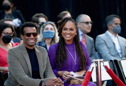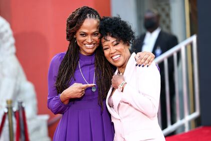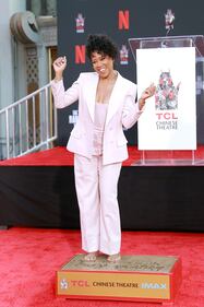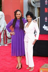 Photos: Regina King honored in Hollywood handprint, footprint ceremony Netflix VP of Original Film Tendo Nagenda and Ava DuVernay attend the Hand and Footprint Ceremony for Oscar winner Regina King at TCL Chinese Theatre on October 28, 2021, in Hollywood, California. (Matt Winkelmeyer/Getty Images)