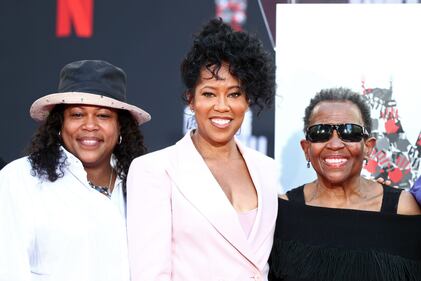 Photos: Regina King honored in Hollywood handprint, footprint ceremony Reina King, Regina King and Gloria King attend the Hand and Footprint Ceremony at TCL Chinese Theatre on October 28, 2021, in Hollywood, California. (Matt Winkelmeyer/Getty Images)
