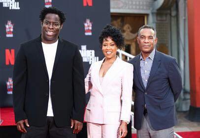 Photos: Regina King honored in Hollywood handprint, footprint ceremony Ian Alexander Jr., Reina King, Regina King, Gloria King, Thomas King and guests attend the Hand and Footprint Ceremony at TCL Chinese Theatre on October 28, 2021, in Hollywood, California. (Matt Winkelmeyer/Getty Images)