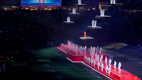 Super Bowl LVII halftime: Rihanna performs during halftime of Super Bowl LVII at State Farm Stadium in Glendale, Arizona. ( Sarah Stier/Getty Images)