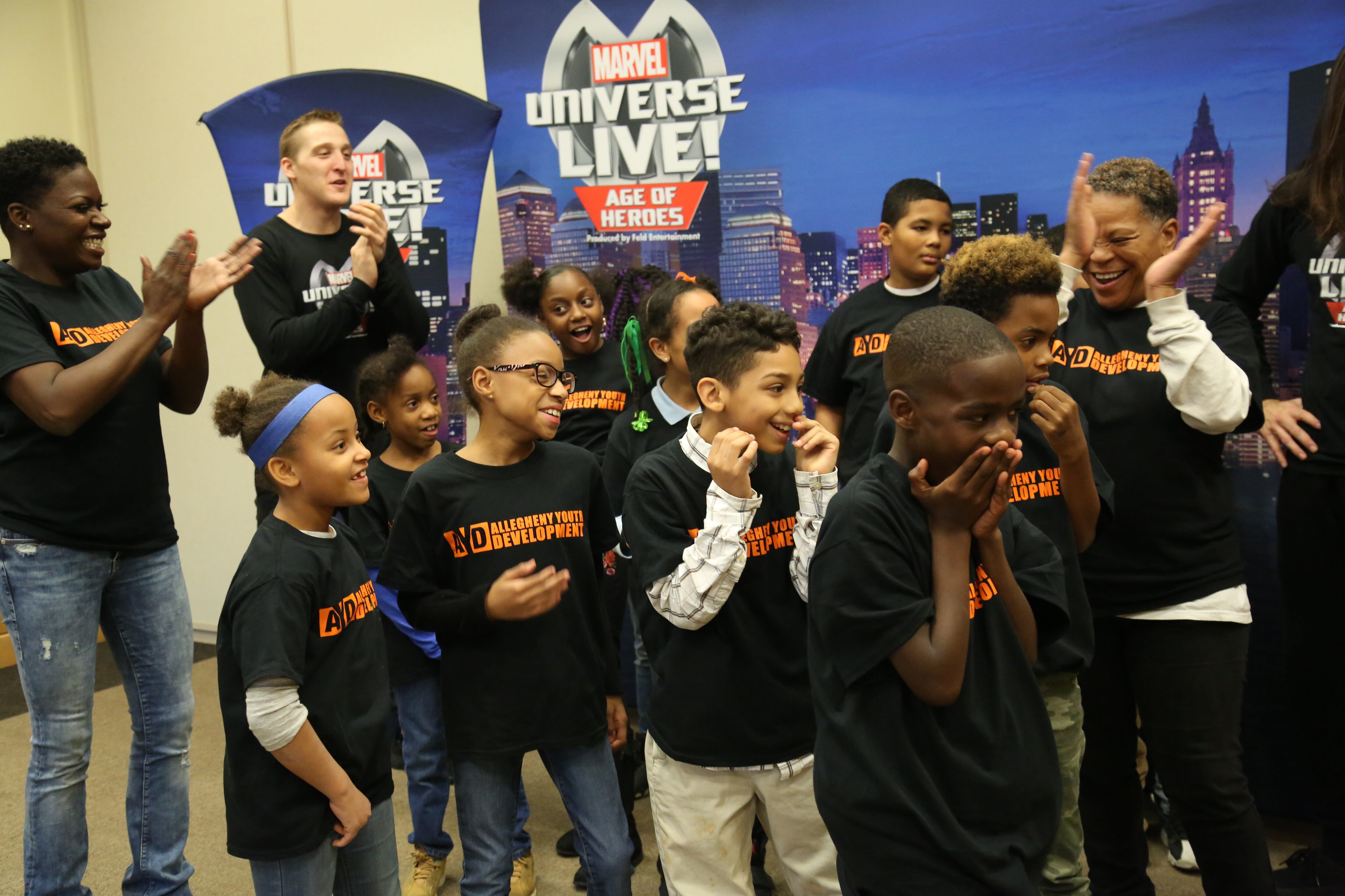 See & Be Seen went behind the scenes before the opening night at PPG Paints Arena as four performers from the show brought a group of 12 excited kids from Tickets for Kids backstage. They demonstrated how to “smash” like the Hulk and fake-flip Yondu onto his back.