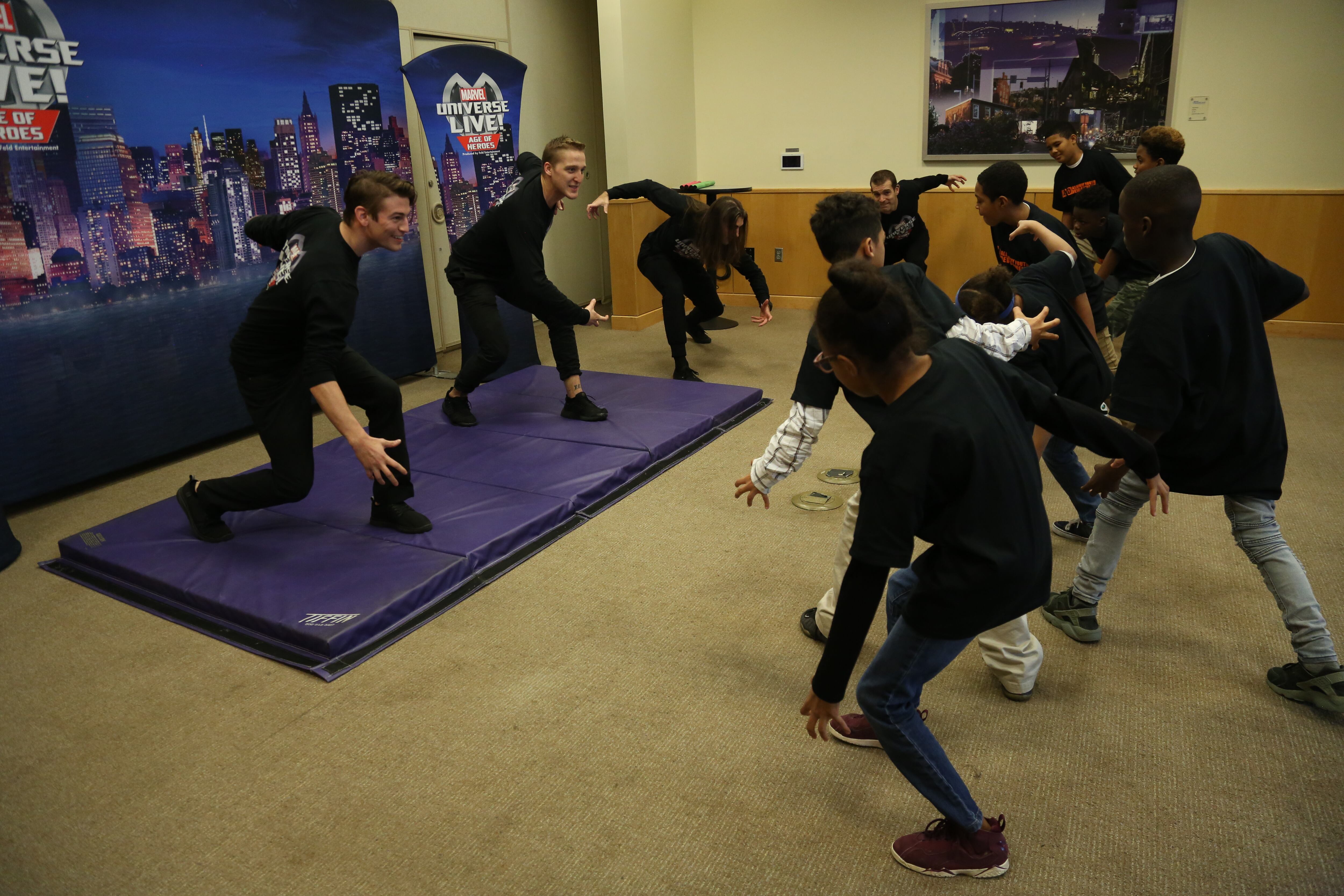 But "The Avengers" and "Guardians of the Galaxy" heroes still find the time to teach kids some superhero martial arts.