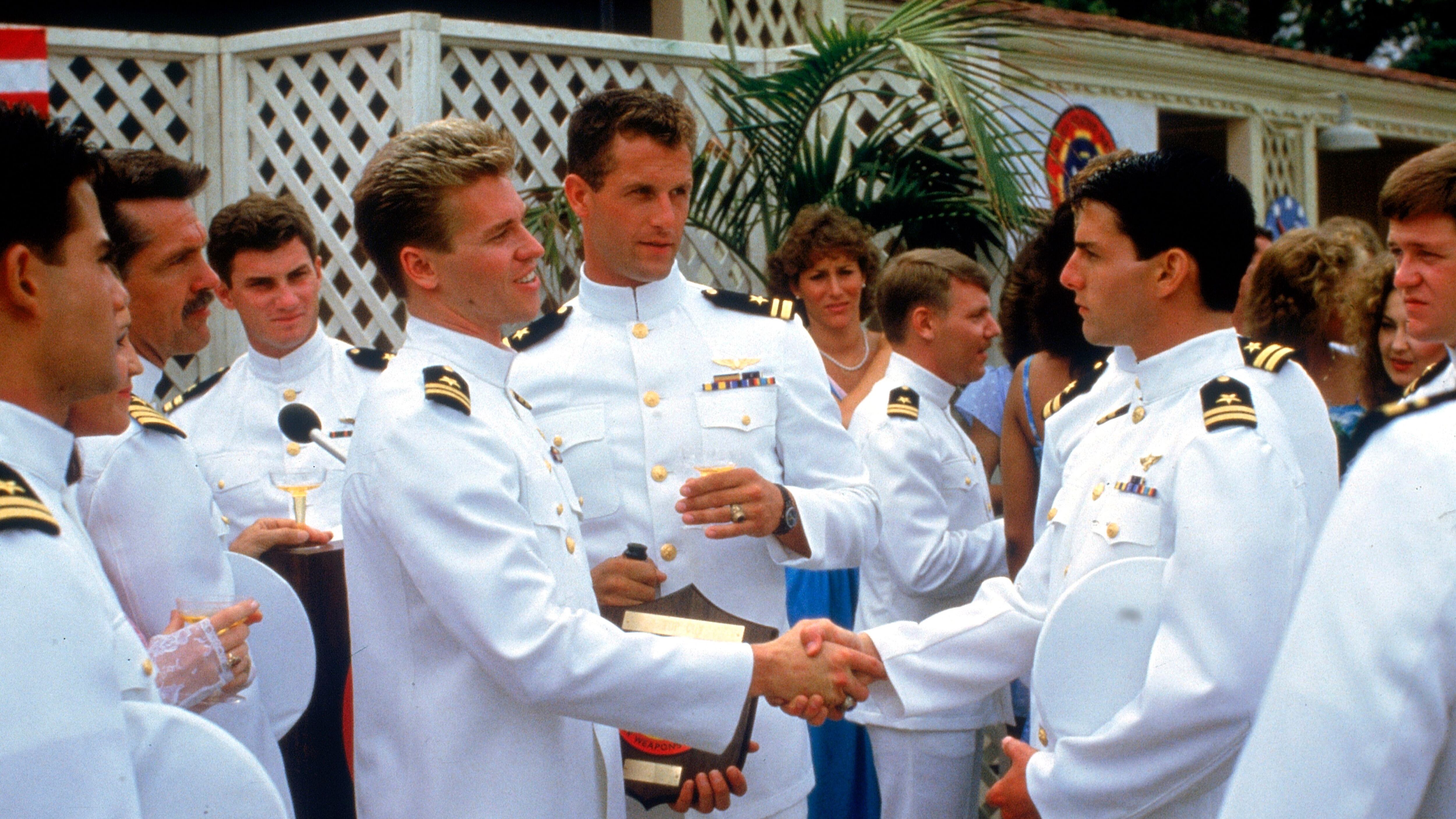 Iceman and Maverick (Tom Cruise) had a frosty, adversarial relationship in Top Gun, vying for ace pilot status at the legendary military flight school. Iceman's famous line to Maverick was: "I don't like you because you're dangerous."