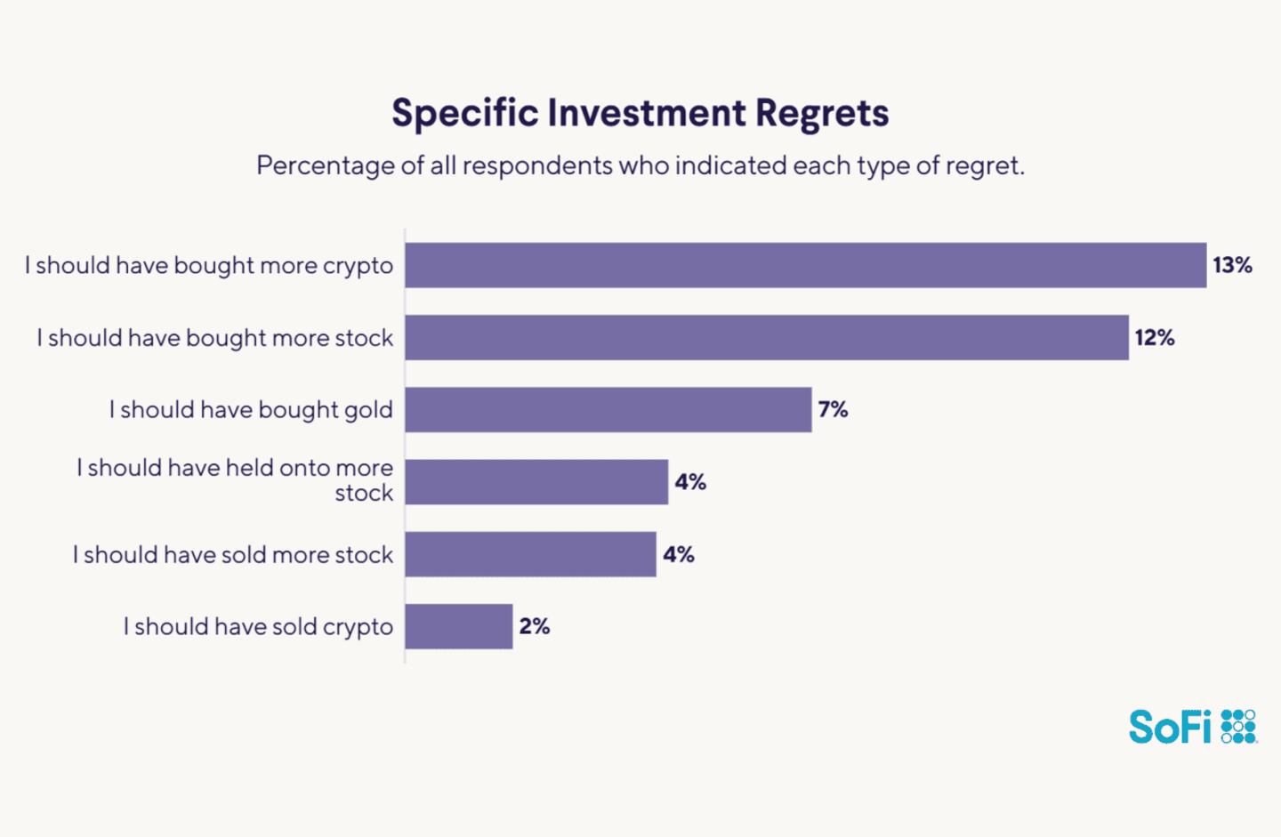 Interestingly, investors don’t have many regrets about their investments over the past year. In fact, 46% said they have no regrets at all, and most others said they should have bought more assets.