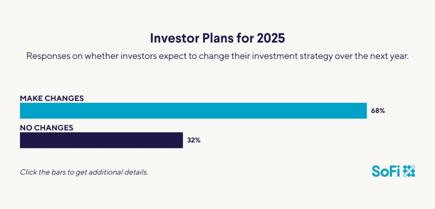 - More than two-thirds of investors (68%) said they plan to shift their strategies in some shape or form in 2025 — whether by increasing their portfolios, buying a new type of investment, working with an advisor, or doing more research.