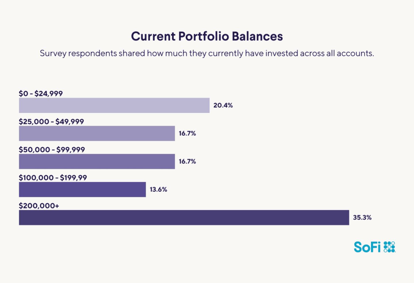 This overall positivity makes sense. After all, the market has kept up a steady pace, even as inflation has lingered, and there are reasons investors may want to lean into that feeling of confidence. More than one-third (35%) of respondents report having more than $200,000 in their investment portfolio. Here’s the breakdown: