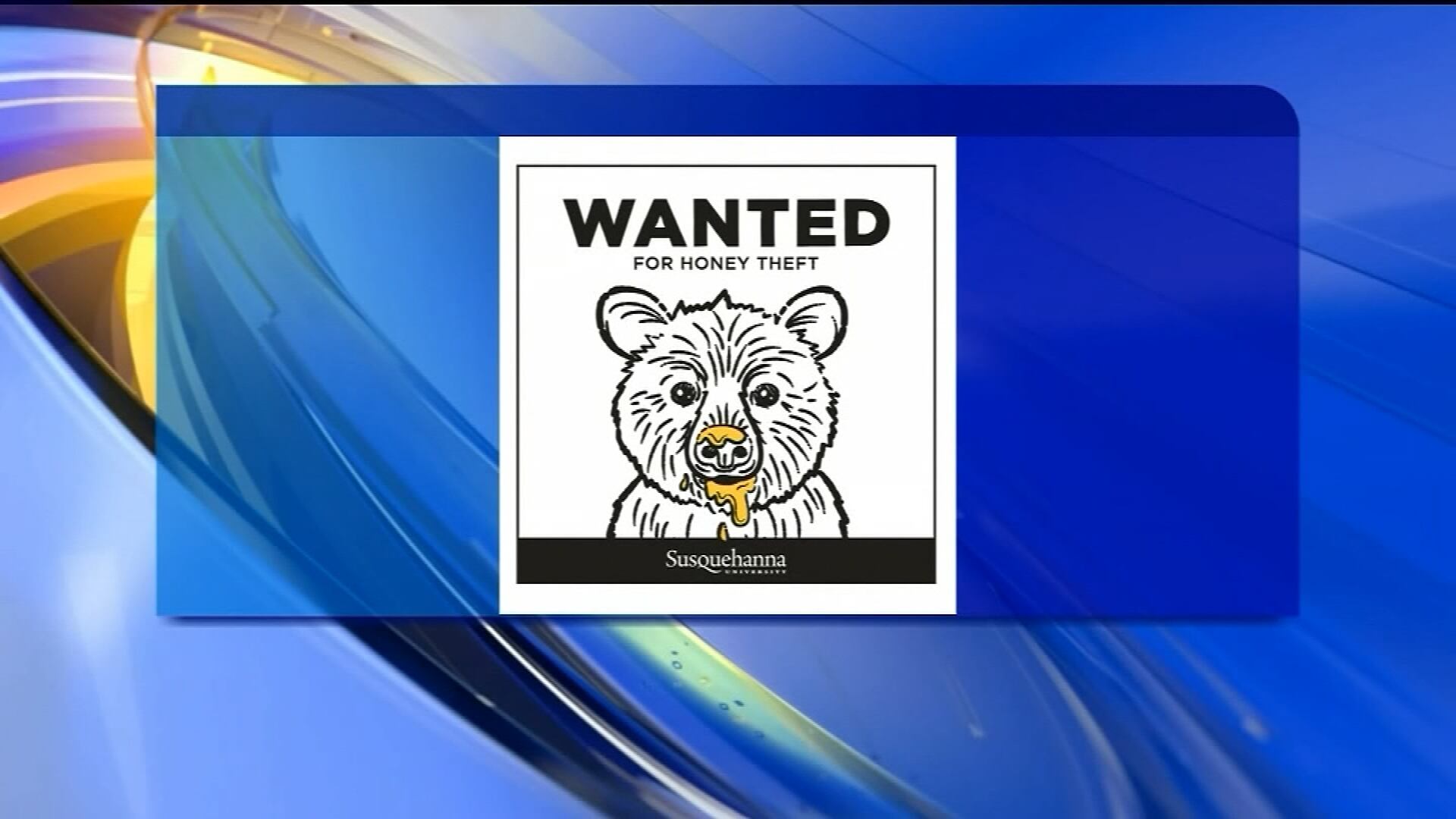 Though there were no witnesses, Susquehanna University posted a wanted poster featuring a sketch of the prime suspect, a black bear. The bear not only damaged the hives and ate the honey, but quite a few bees died.