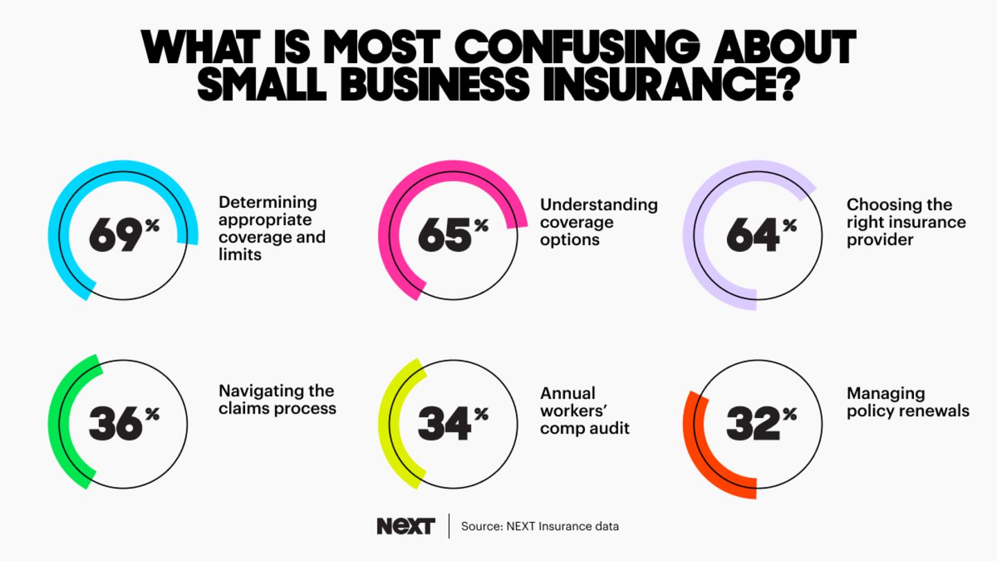 Nearly 7 in 10 small business owners say they find insurance confusing. They struggle to understand coverage options, choose the right provider and determine appropriate limits.