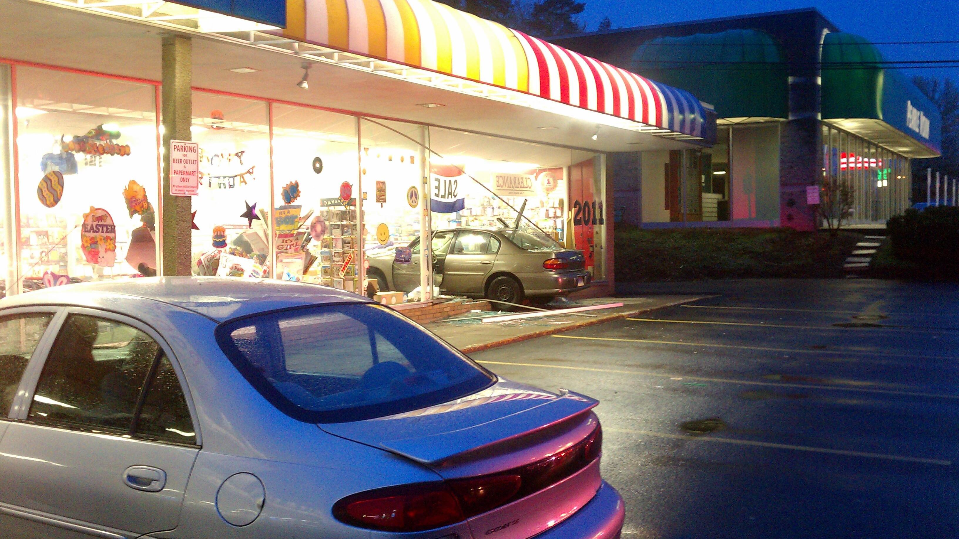 ROSS TOWNSHIP, Pa.,None — A car crashed into a Paper Mart in Ross Township Friday evening.