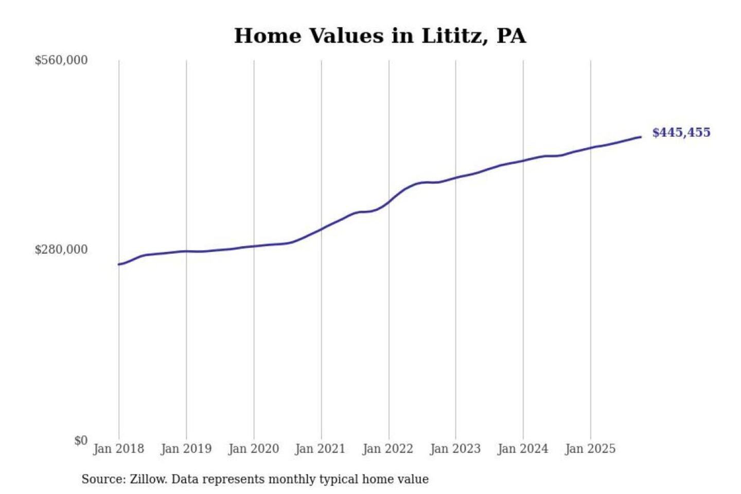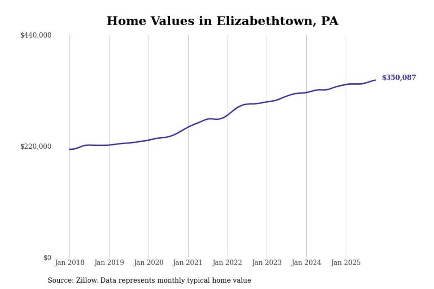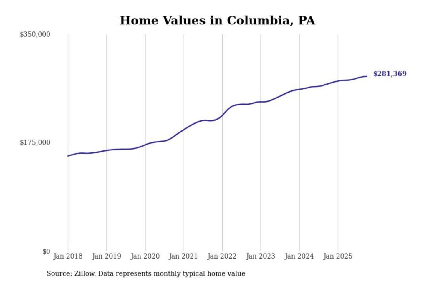 Stacker compiled a list of cities with the most expensive homes in the Lancaster, PA metro area using data from Zillow. Charts show the monthly typical home value since January 2018.
