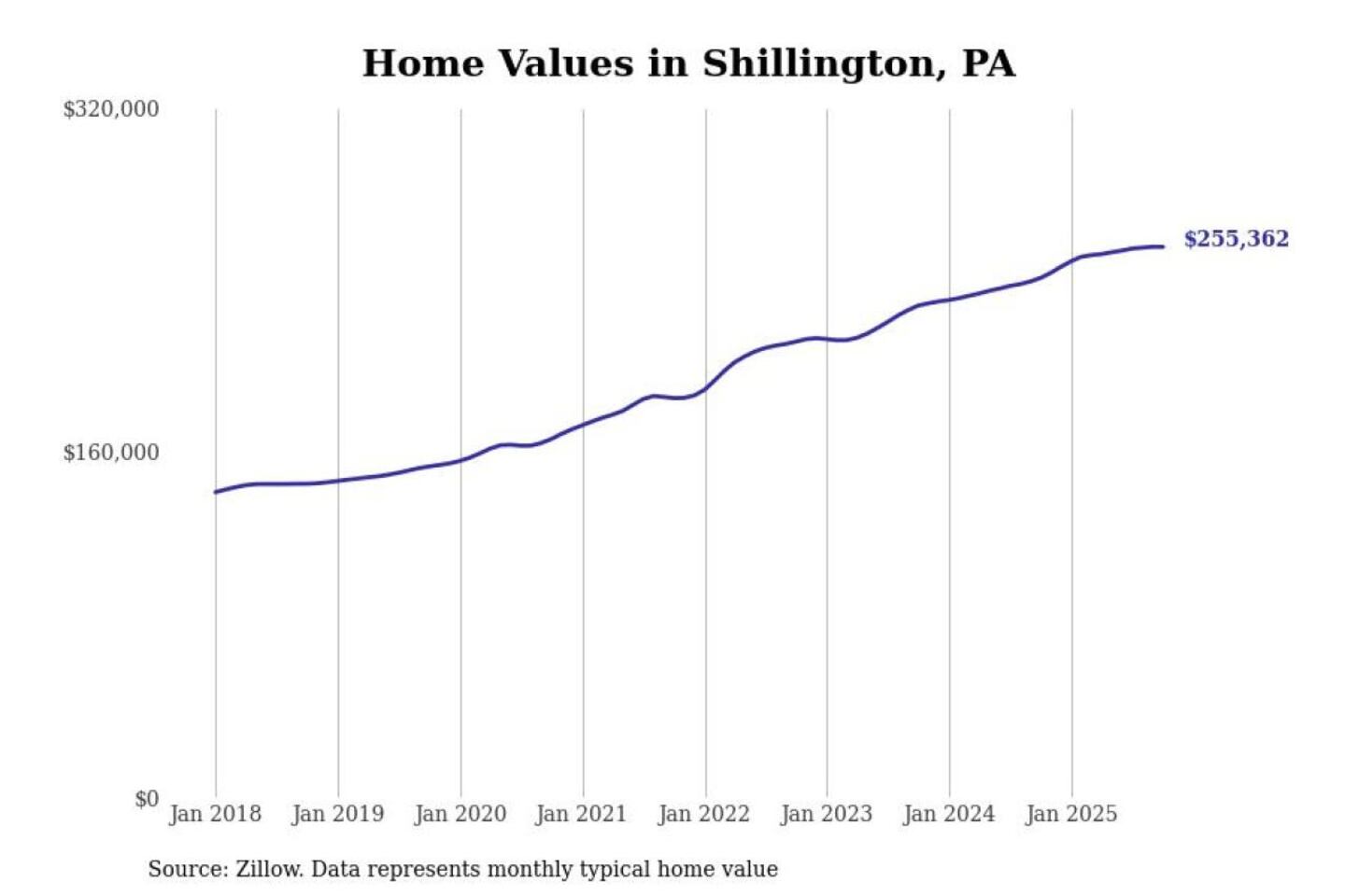 Stacker compiled a list of cities with the most expensive homes in the Reading, PA metro area using data from Zillow. Charts show the monthly typical home value since January 2018.