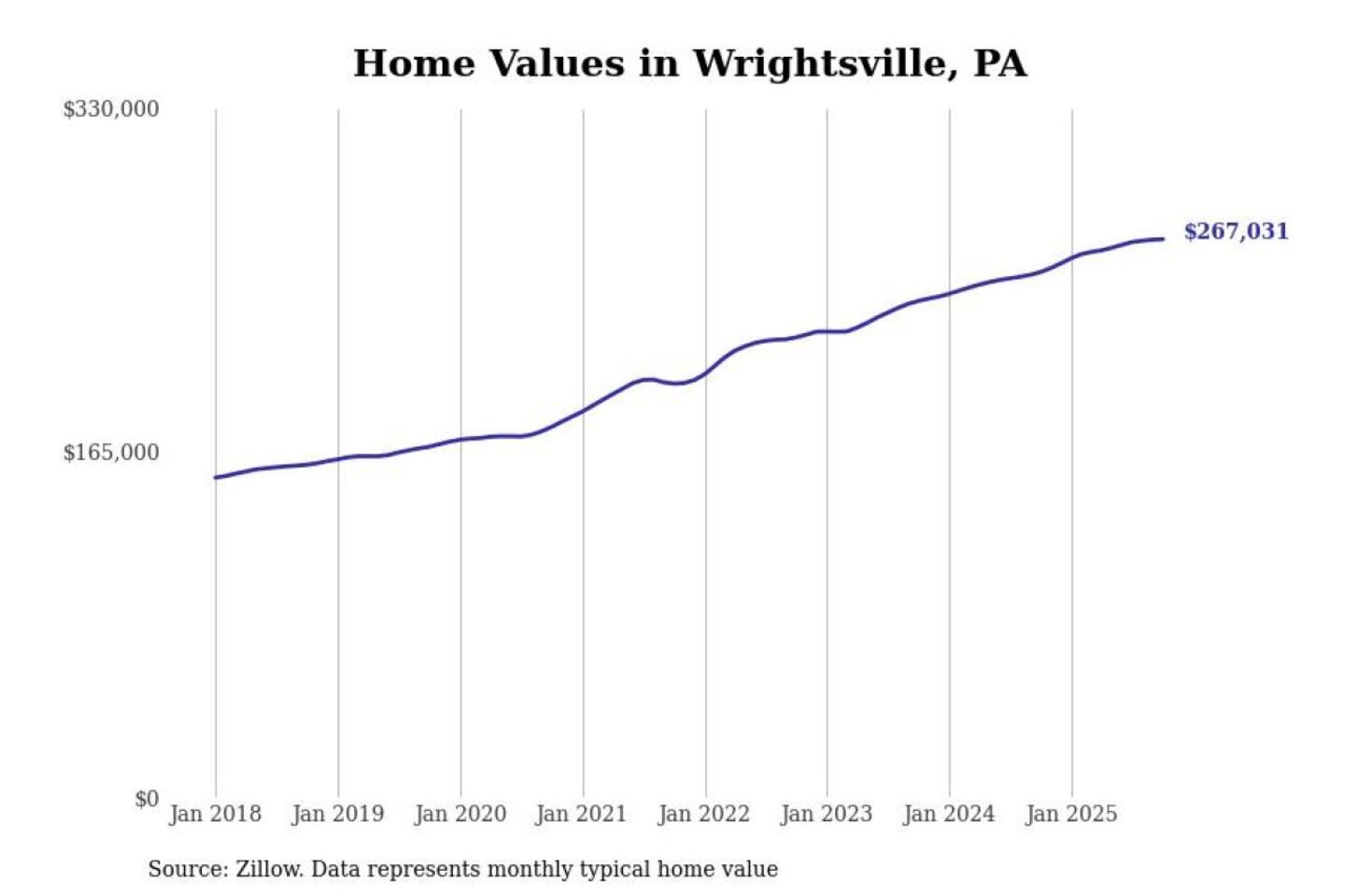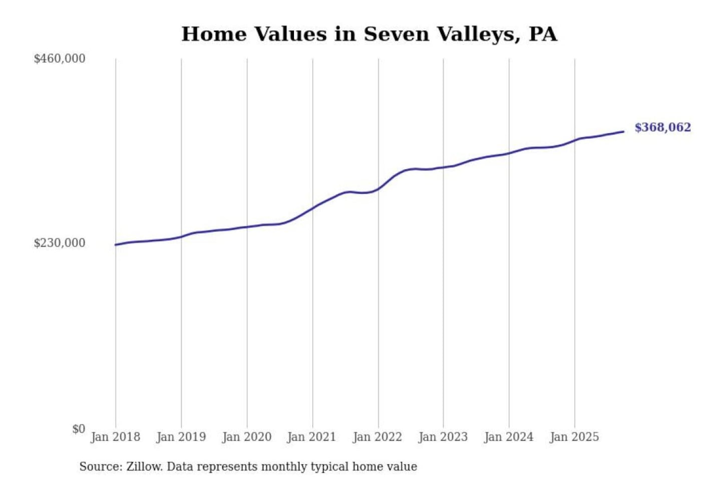 Stacker compiled a list of cities with the most expensive homes in the York-Hanover, PA metro area using data from Zillow. Charts show the monthly typical home value since January 2018.