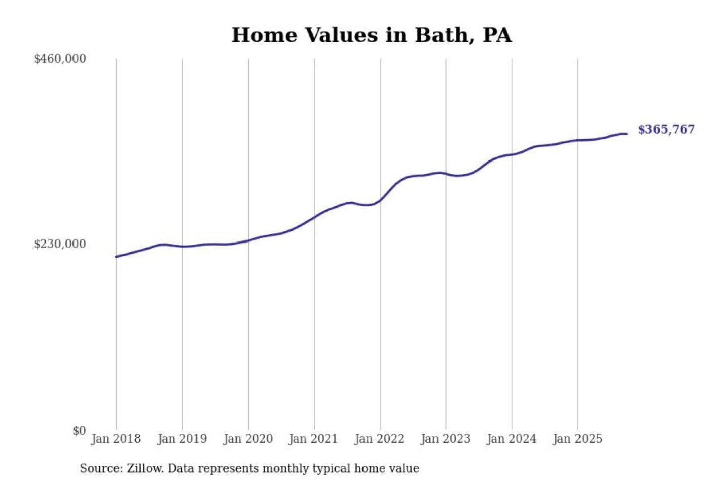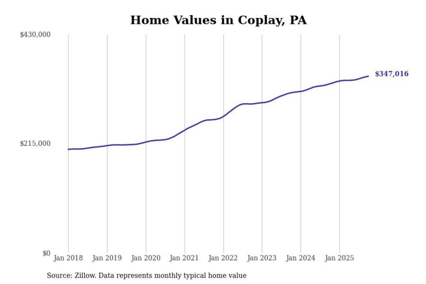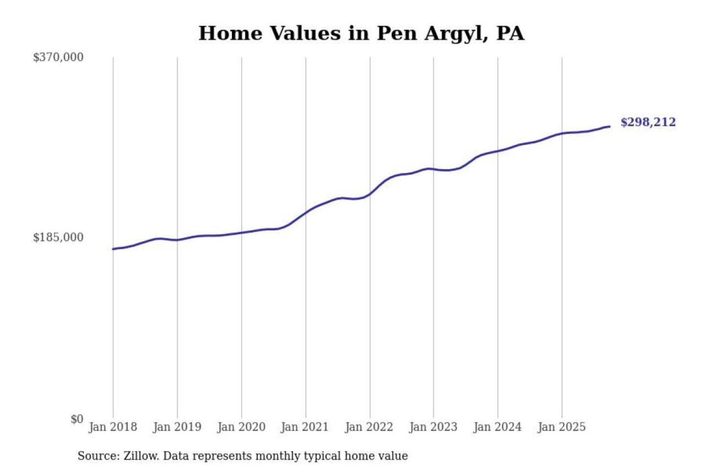 Stacker compiled a list of cities with the most expensive homes in the Allentown metro area using data from Zillow. Charts show the monthly typical home value since January 2018. Data was available for 42 cities and towns.