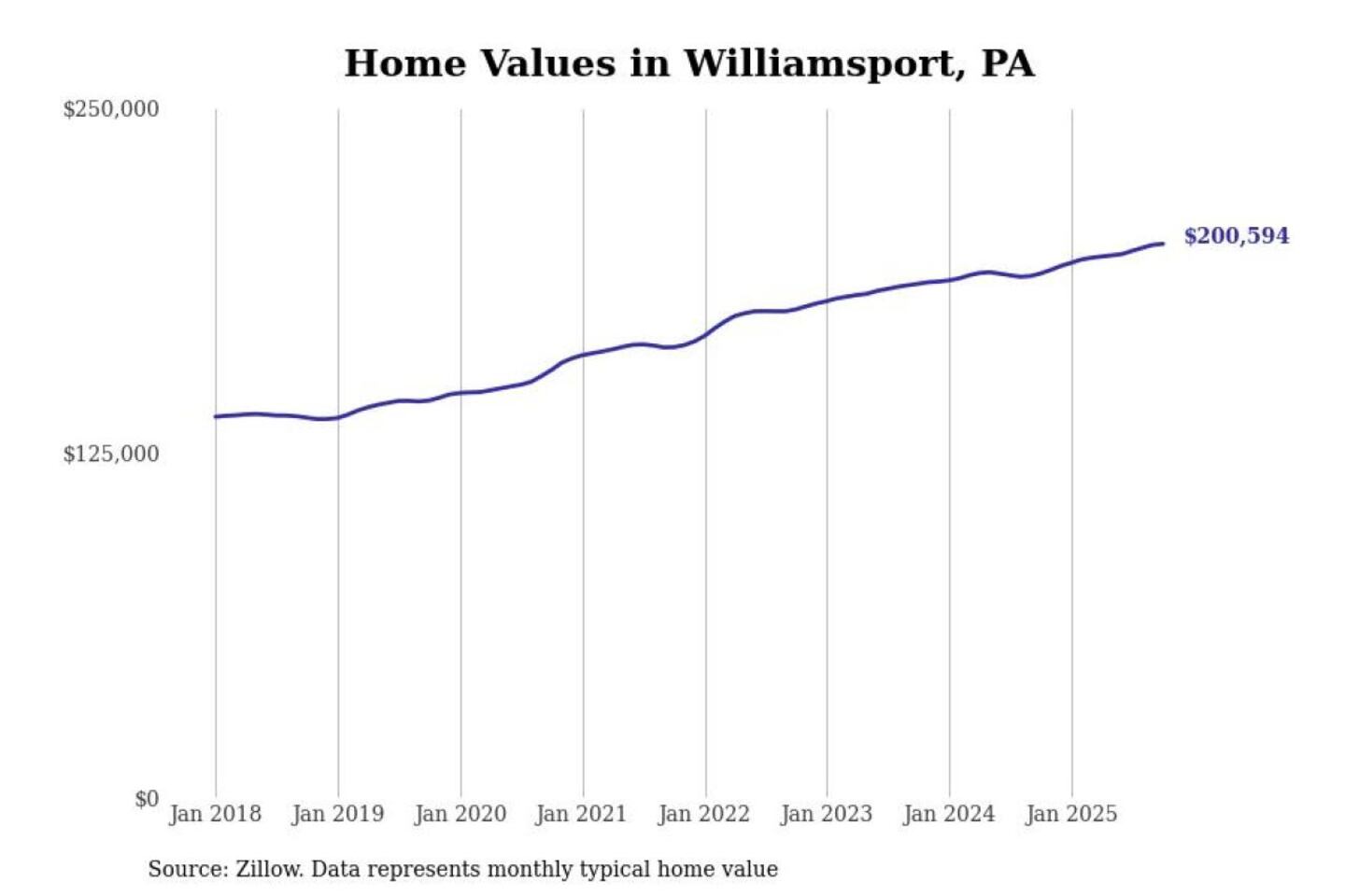 Stacker compiled a list of cities with the most expensive homes in the Williamsport metro area using data from Zillow. Charts show the monthly typical home value since January 2018. All 7 cities and towns with data available were included in the list.