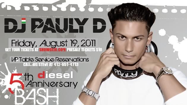 PITTSBURGH,None — Diesel Club Lounge on Pittsburgh's South Side is celebrating its five year anniversary on Friday with DJ Pauly D from the popular MTV hit show "Jersey Shore." The celebration is the Official Britney Spears After-Party.