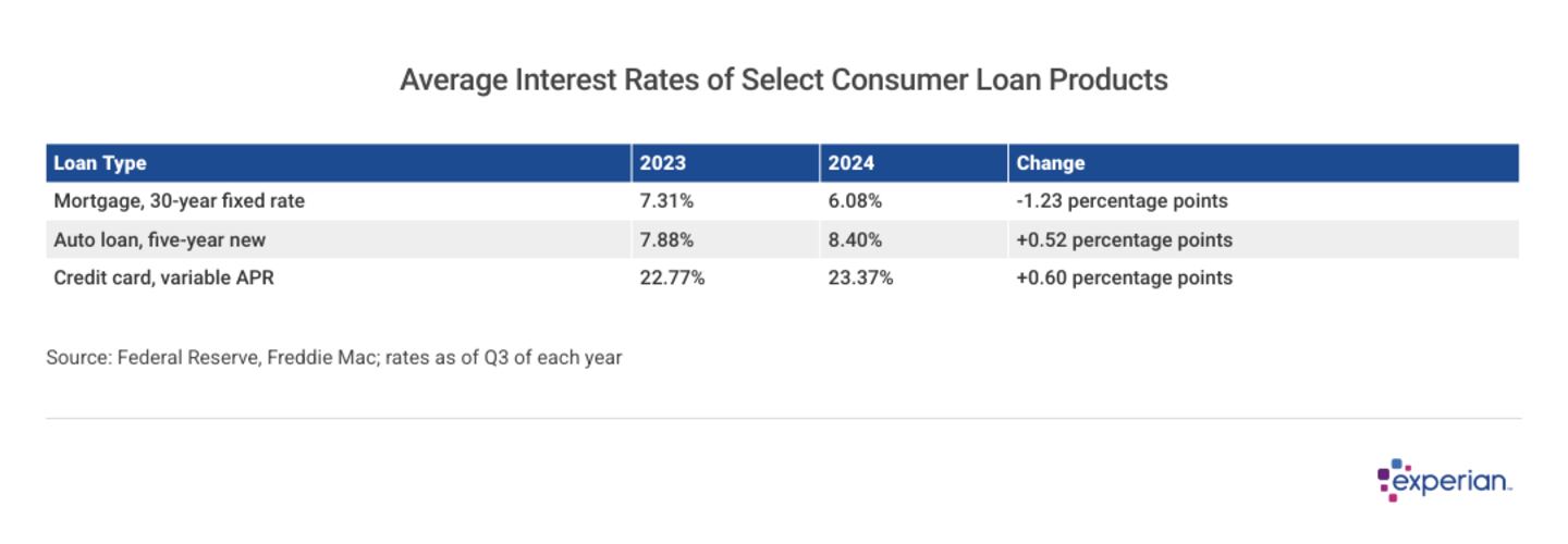 For many consumers, 2024 was a mixed bag of pluses and minuses when it came to credit. Many borrowers with lower fixed-rate mortgages considered themselves lucky and resisted the urge to move or sell. Others, like those straining under the size of their credit card and car payments, endured record-high credit card APRs and car payments due to both higher rates and sticker prices.