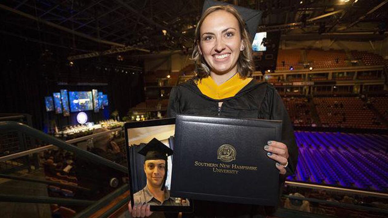 MANCHESTER, N.H. — A military couple was able to graduate together thanks to help from a local college.